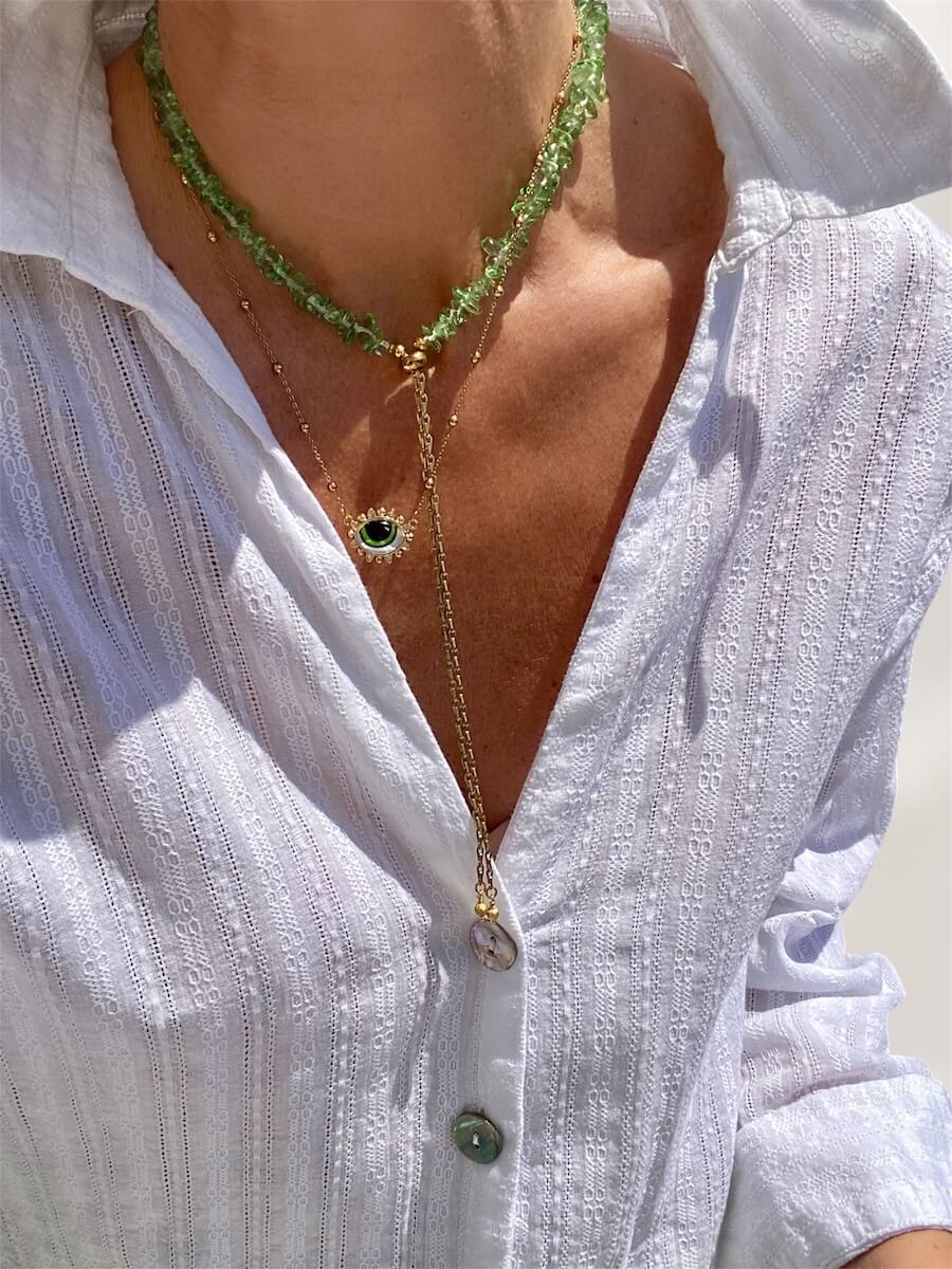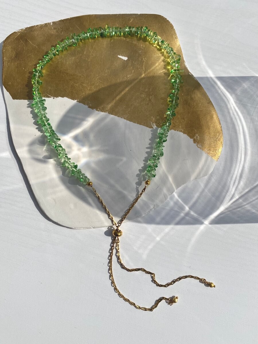 Crystal Green Beaded Chain Necklace